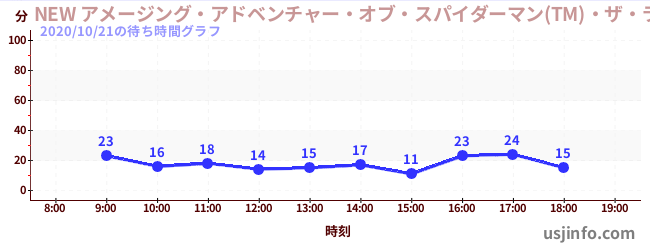 • NEW アメージング・アドベンチャー・オブ・スパイダーマン(TM)・ザ・ライド 4K3D$B$N(B2020年10月21日の待ち時間