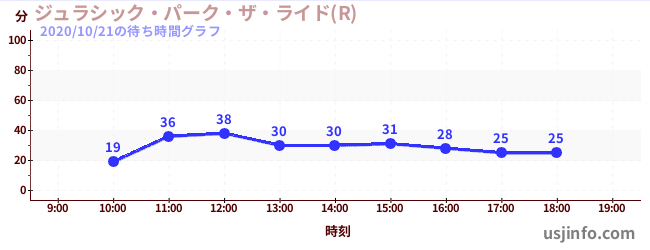 • ジュラシック・パーク・ザ・ライド(R)$B$N(B2020年10月21日の待ち時間