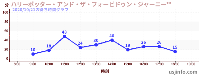 • ハリーポッター・アンド・ザ・フォービドゥン・ジャーニー™$B$N(B2020年10月21日の待ち時間