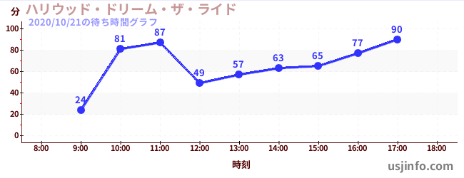 • ハリウッド・ドリーム・ザ・ライド$B$N(B2020年10月21日の待ち時間