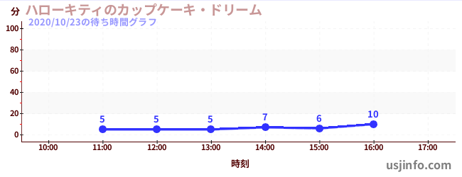 • ハローキティのカップケーキ・ドリーム$B$N(B2020年10月23日の待ち時間