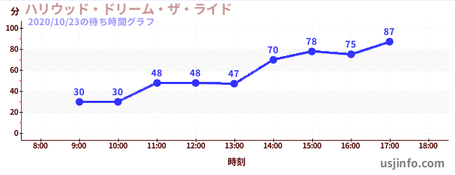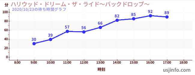 • ハリウッド・ドリーム・ザ・ライド〜バックドロップ〜$B$N(B2020年10月23日の待ち時間
