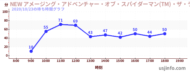 • NEW アメージング・アドベンチャー・オブ・スパイダーマン(TM)・ザ・ライド 4K3D$B$N(B2020年10月23日の待ち時間