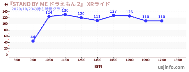 • 『STAND BY ME ドラえもん 2』 XRライド$B$N(B2020年10月23日の待ち時間