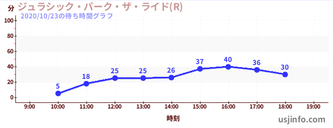 • ジュラシック・パーク・ザ・ライド(R)$B$N(B2020年10月23日の待ち時間