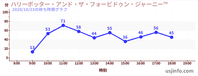• ハリーポッター・アンド・ザ・フォービドゥン・ジャーニー™$B$N(B2020年10月23日の待ち時間