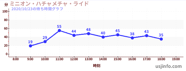• ミニオン・ハチャメチャ・ライド$B$N(B2020年10月23日の待ち時間
