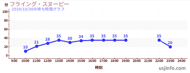 • フライング・スヌーピー$B$N(B2020年10月30日の待ち時間