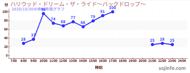 • ハリウッド・ドリーム・ザ・ライド〜バックドロップ〜$B$N(B2020年10月30日の待ち時間