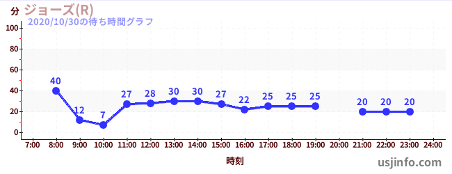 • ジョーズ(R)$B$N(B2020年10月30日の待ち時間