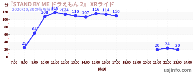 • 『STAND BY ME ドラえもん 2』 XRライド$B$N(B2020年10月30日の待ち時間