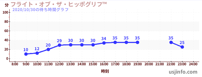 • フライト・オブ・ザ・ヒッポグリフ™$B$N(B2020年10月30日の待ち時間