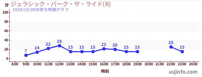 • ジュラシック・パーク・ザ・ライド(R)$B$N(B2020年10月30日の待ち時間