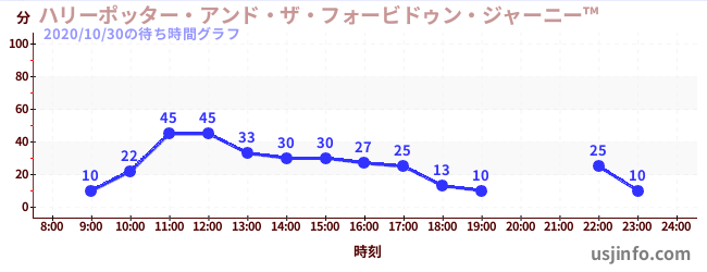 • ハリーポッター・アンド・ザ・フォービドゥン・ジャーニー™$B$N(B2020年10月30日の待ち時間