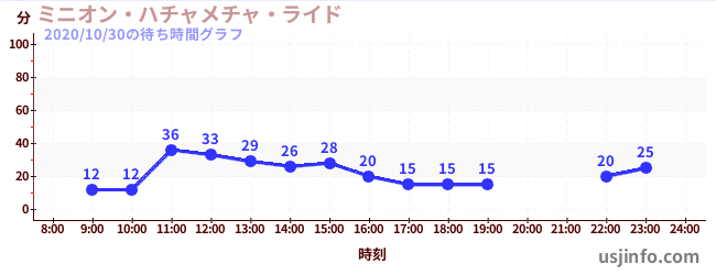 • ミニオン・ハチャメチャ・ライド$B$N(B2020年10月30日の待ち時間
