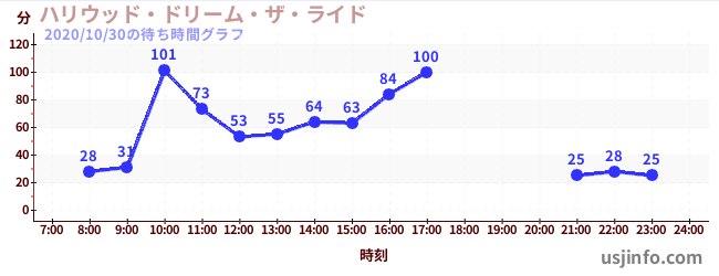 • ハリウッド・ドリーム・ザ・ライド$B$N(B2020年10月30日の待ち時間