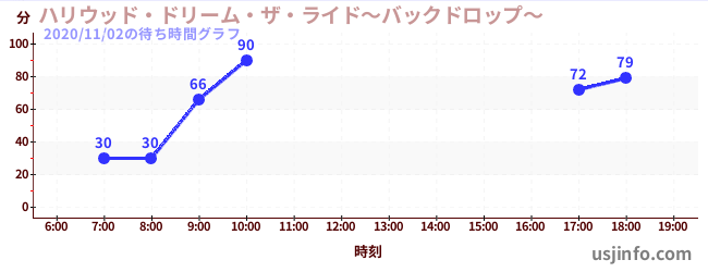 • ハリウッド・ドリーム・ザ・ライド〜バックドロップ〜$B$N(B2020年11月02日の待ち時間