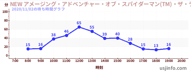 • NEW アメージング・アドベンチャー・オブ・スパイダーマン(TM)・ザ・ライド 4K3D$B$N(B2020年11月02日の待ち時間