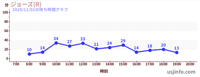 • ジョーズ(R)$B$N(B2020年11月02日の待ち時間