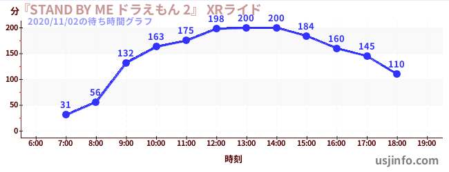 • 『STAND BY ME ドラえもん 2』 XRライド$B$N(B2020年11月02日の待ち時間