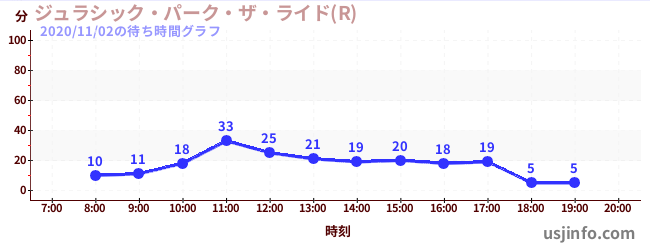 • ジュラシック・パーク・ザ・ライド(R)$B$N(B2020年11月02日の待ち時間
