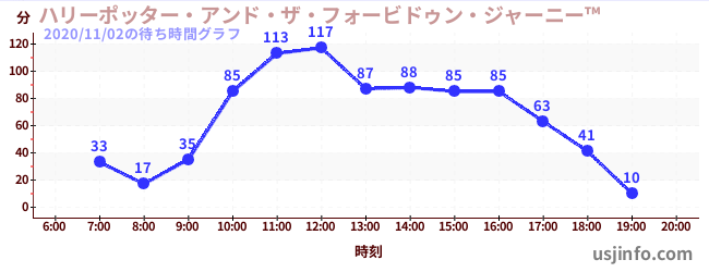 • ハリーポッター・アンド・ザ・フォービドゥン・ジャーニー™$B$N(B2020年11月02日の待ち時間