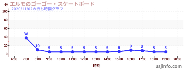 • エルモのゴーゴー・スケートボード$B$N(B2020年11月02日の待ち時間