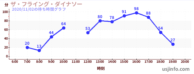 • ザ・フライング・ダイナソー$B$N(B2020年11月02日の待ち時間