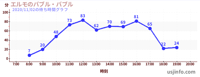 • エルモのバブル・バブル$B$N(B2020年11月02日の待ち時間