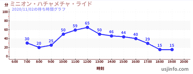 • ミニオン・ハチャメチャ・ライド$B$N(B2020年11月02日の待ち時間