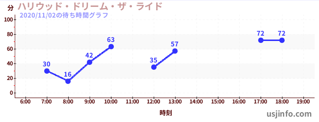 • ハリウッド・ドリーム・ザ・ライド$B$N(B2020年11月02日の待ち時間