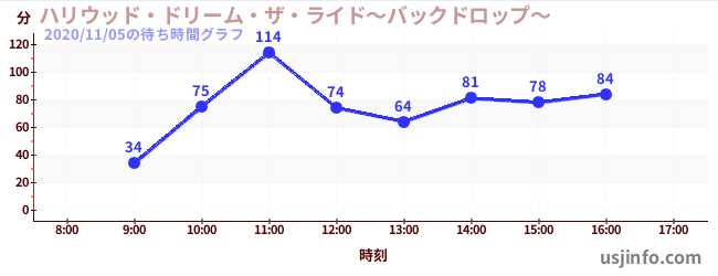 • ハリウッド・ドリーム・ザ・ライド〜バックドロップ〜$B$N(B2020年11月05日の待ち時間