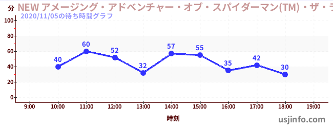• NEW アメージング・アドベンチャー・オブ・スパイダーマン(TM)・ザ・ライド 4K3D$B$N(B2020年11月05日の待ち時間