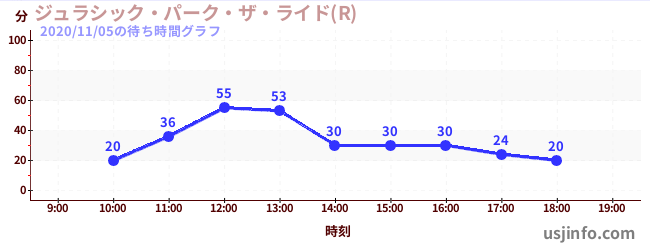 • ジュラシック・パーク・ザ・ライド(R)$B$N(B2020年11月05日の待ち時間