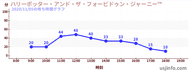 • ハリーポッター・アンド・ザ・フォービドゥン・ジャーニー™$B$N(B2020年11月05日の待ち時間