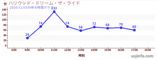 • ハリウッド・ドリーム・ザ・ライド$B$N(B2020年11月05日の待ち時間