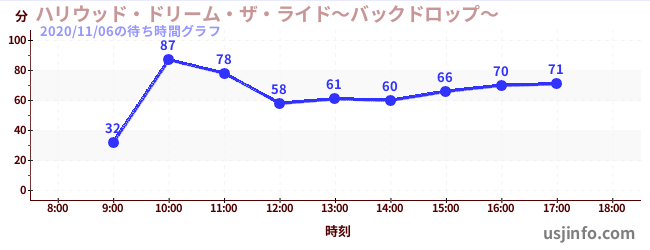 • ハリウッド・ドリーム・ザ・ライド〜バックドロップ〜$B$N(B2020年11月06日の待ち時間