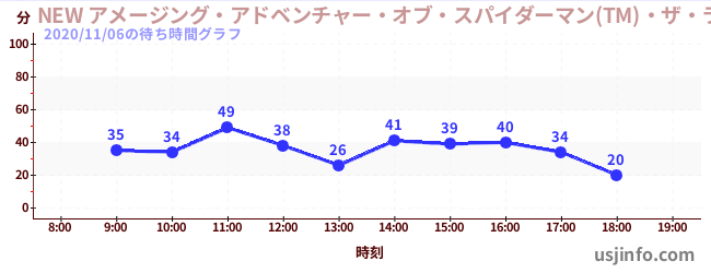 • NEW アメージング・アドベンチャー・オブ・スパイダーマン(TM)・ザ・ライド 4K3D$B$N(B2020年11月06日の待ち時間