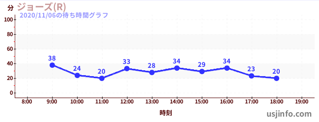 • ジョーズ(R)$B$N(B2020年11月06日の待ち時間