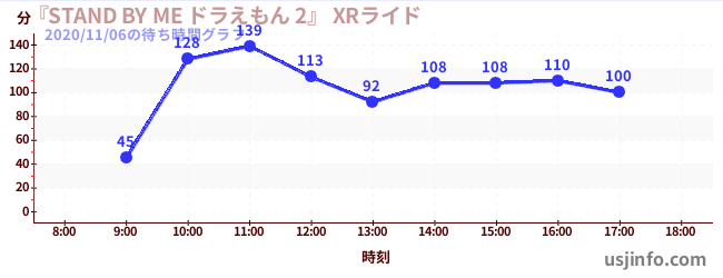 • 『STAND BY ME ドラえもん 2』 XRライド$B$N(B2020年11月06日の待ち時間