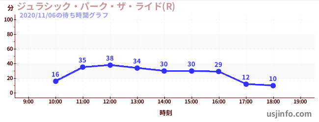 • ジュラシック・パーク・ザ・ライド(R)$B$N(B2020年11月06日の待ち時間