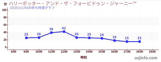 • ハリーポッター・アンド・ザ・フォービドゥン・ジャーニー™$B$N(B2020年11月06日の待ち時間