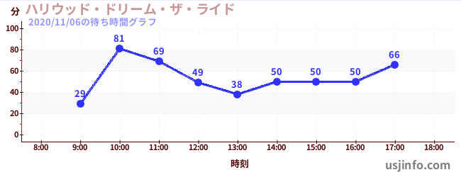 • ハリウッド・ドリーム・ザ・ライド$B$N(B2020年11月06日の待ち時間