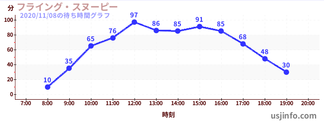 • フライング・スヌーピー$B$N(B2020年11月08日の待ち時間