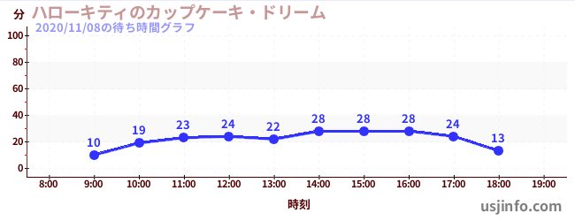 • ハローキティのカップケーキ・ドリーム$B$N(B2020年11月08日の待ち時間