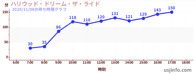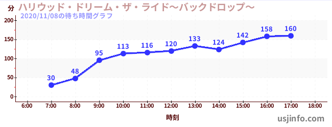 • ハリウッド・ドリーム・ザ・ライド$B$N(B2020年11月08日の待ち時間