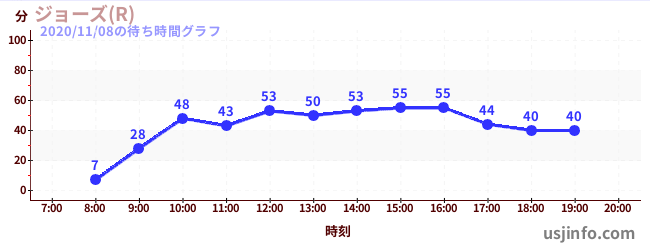• ジョーズ(R)$B$N(B2020年11月08日の待ち時間