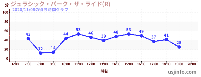 • ジュラシック・パーク・ザ・ライド(R)$B$N(B2020年11月08日の待ち時間
