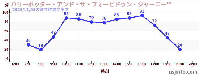 • ハリーポッター・アンド・ザ・フォービドゥン・ジャーニー™$B$N(B2020年11月08日の待ち時間