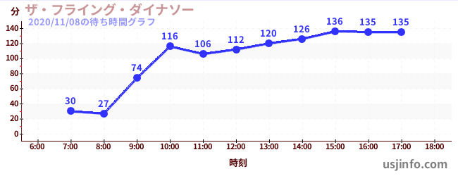 • ザ・フライング・ダイナソー$B$N(B2020年11月08日の待ち時間